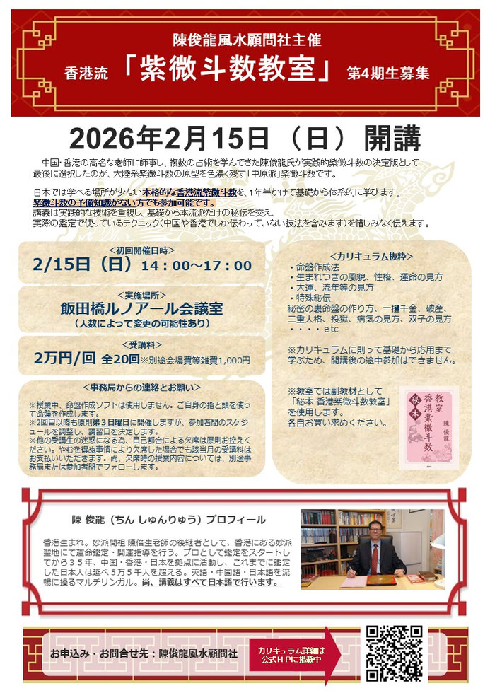 日本で流行っている台湾派ではなく、香港で主流となっている中州正統派を学ぶ紫微斗数講座です。